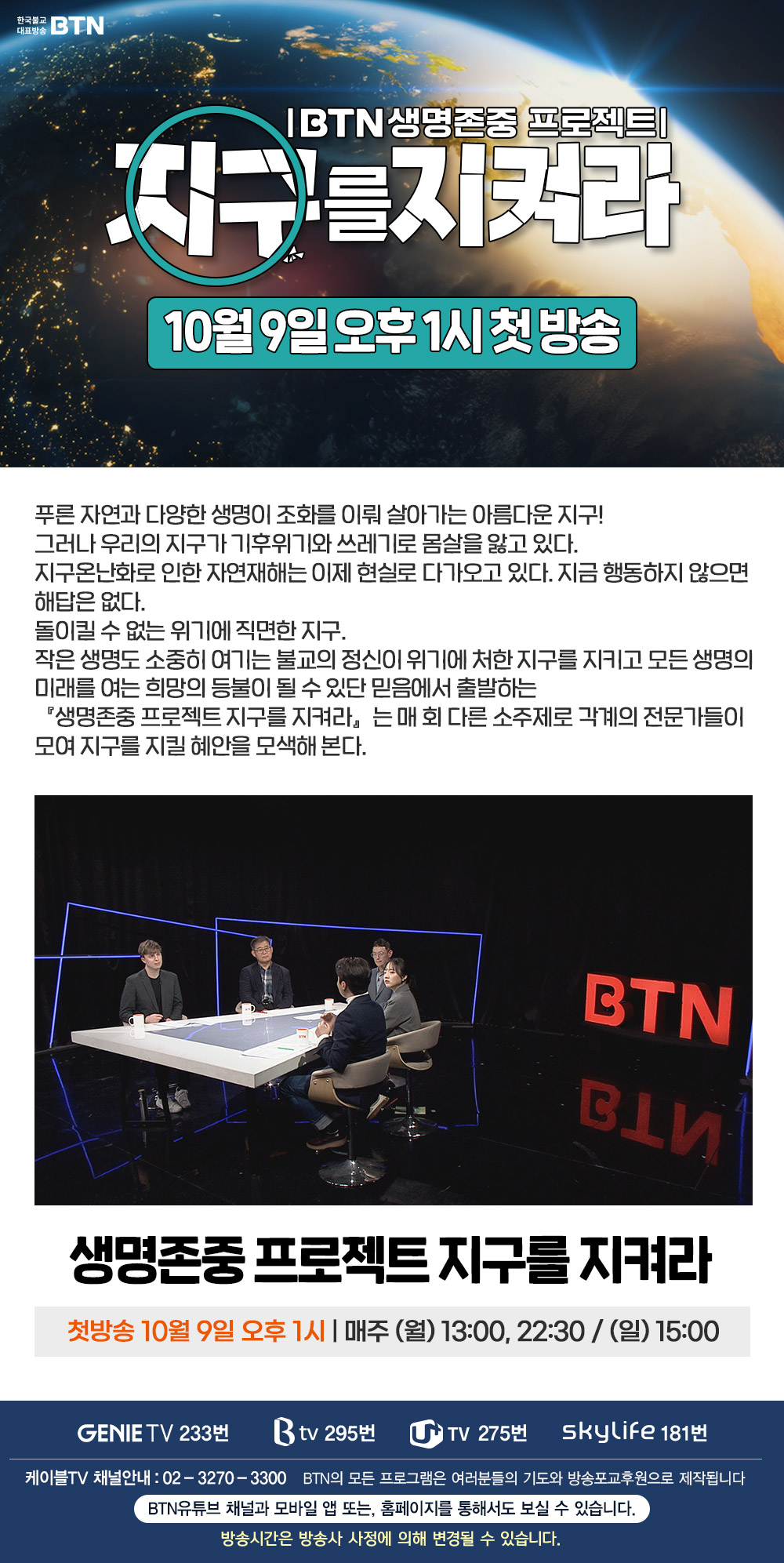 BTN »ý¸íÁ¸Áß ÇÁ·ÎÁ§Æ® Áö±¸¸¦ÁöÄÑ¶ó ¹æ¼Û¾È³»